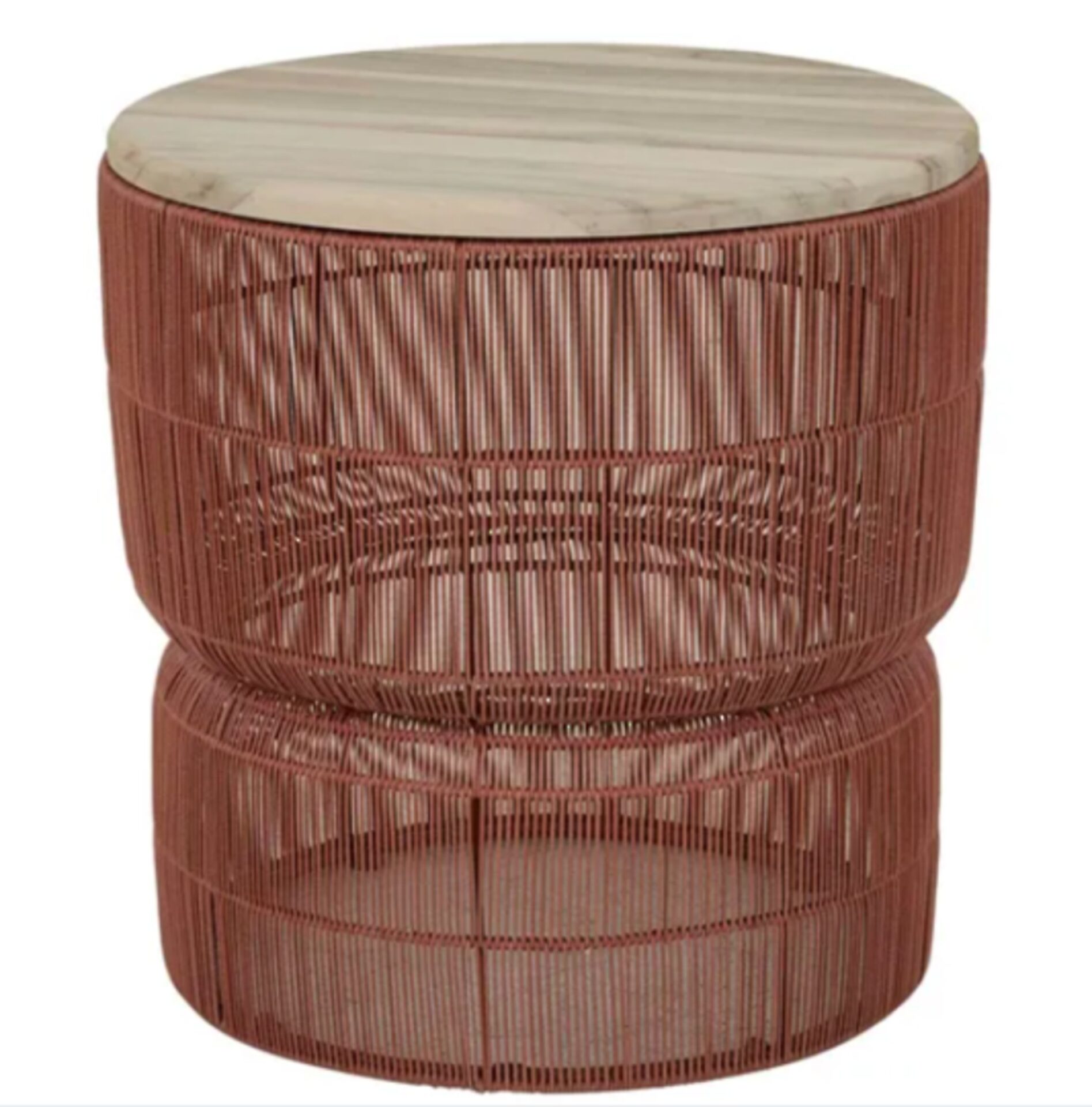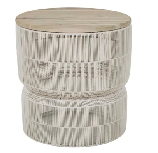 An intricate open weave design in resin makes the Corsica Float side table a standout choice for a living area and is finished with a beautiful teak top.