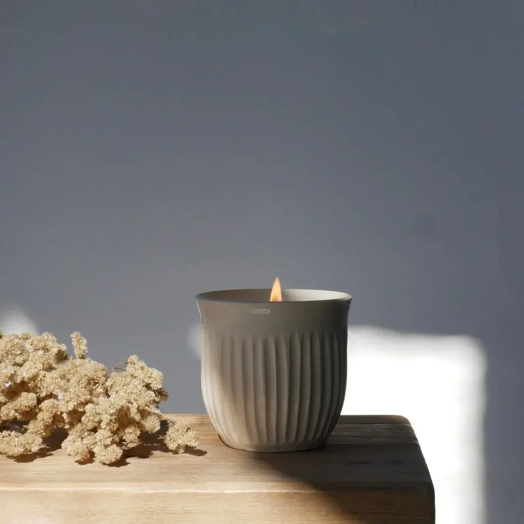 Clean-burning candle made with coconut wax and scented with therapeutic grade essential oil of magnolia leaf, bergamot, clary sage and white grapefruit.