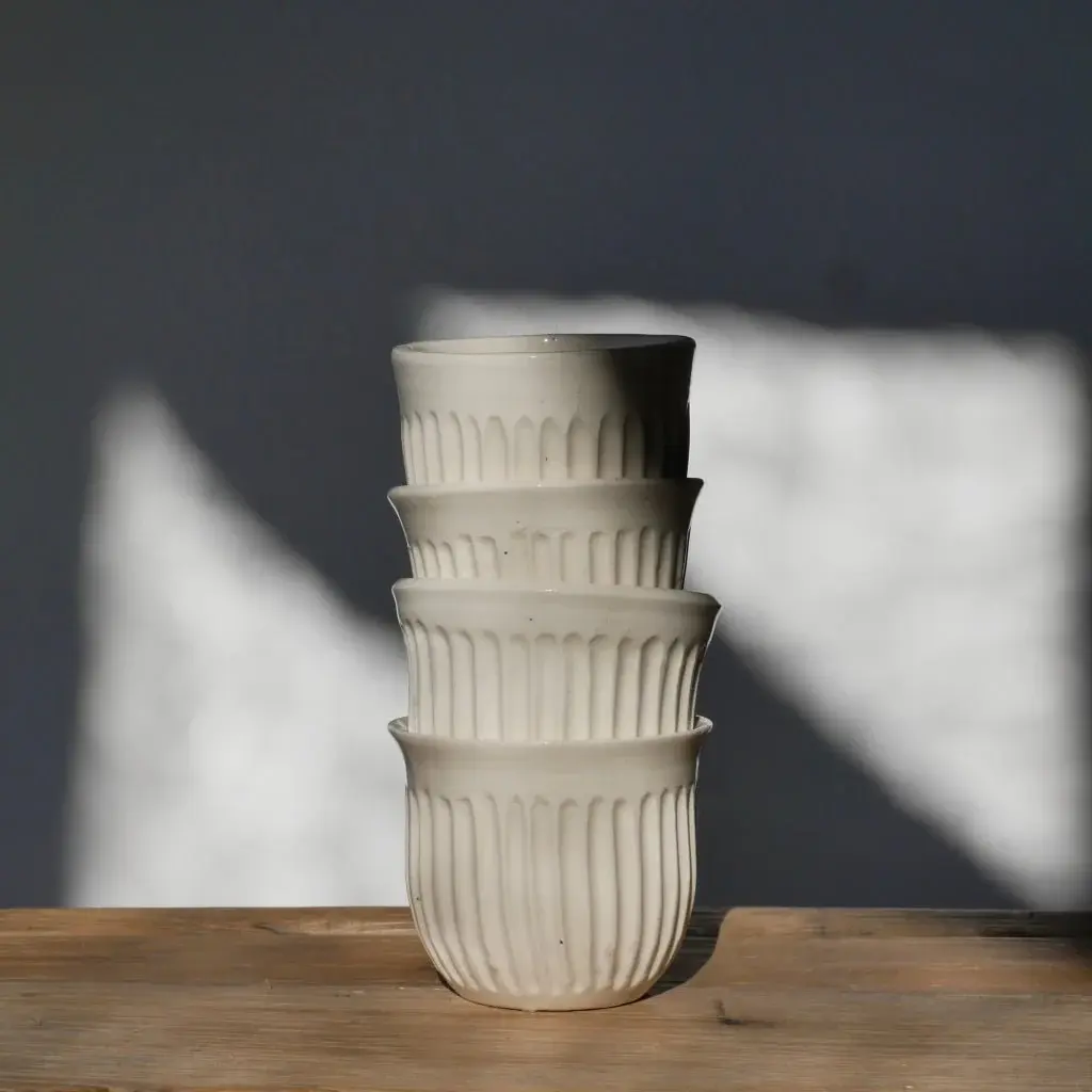 Poet’s summer ceramic collaboration is with Taupo-based artist Isabelle Meyer of Dahlia in Clay. We’ve long admired Isabelle’s delicate, organic style and these elegant tumblers pair beautifully with our Summer blend of magnolia leaf and bergamot.