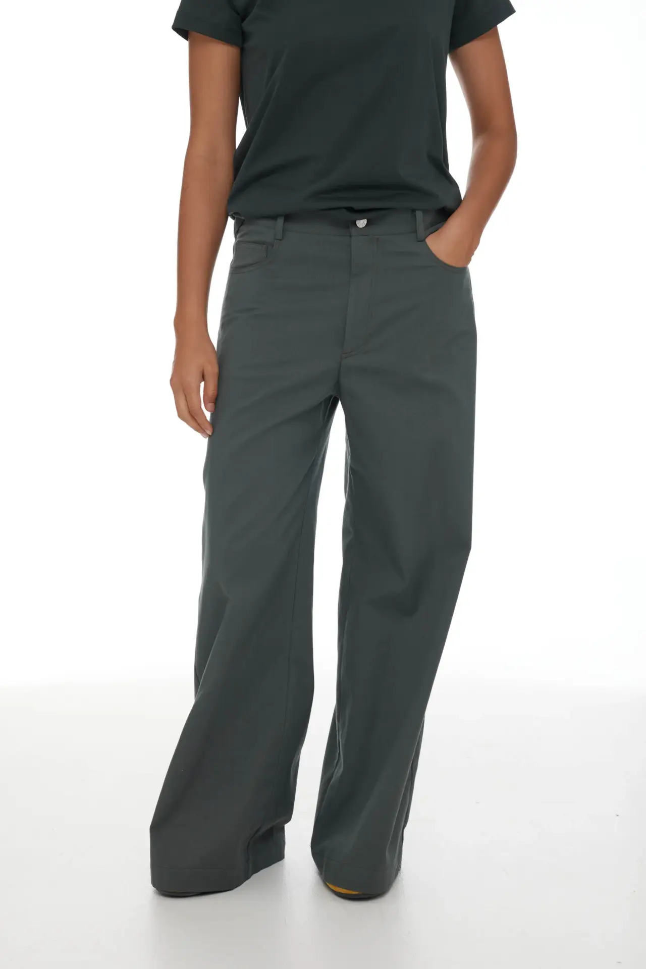 Introducing the Haynes Jean, a modern and bold piece that captures the essence of contemporary style. Crafted from marine coloured cotton twill, these jeans offer a wide leg, with two main front pockets and two back patch pockets, these jeans combine style and functionality.