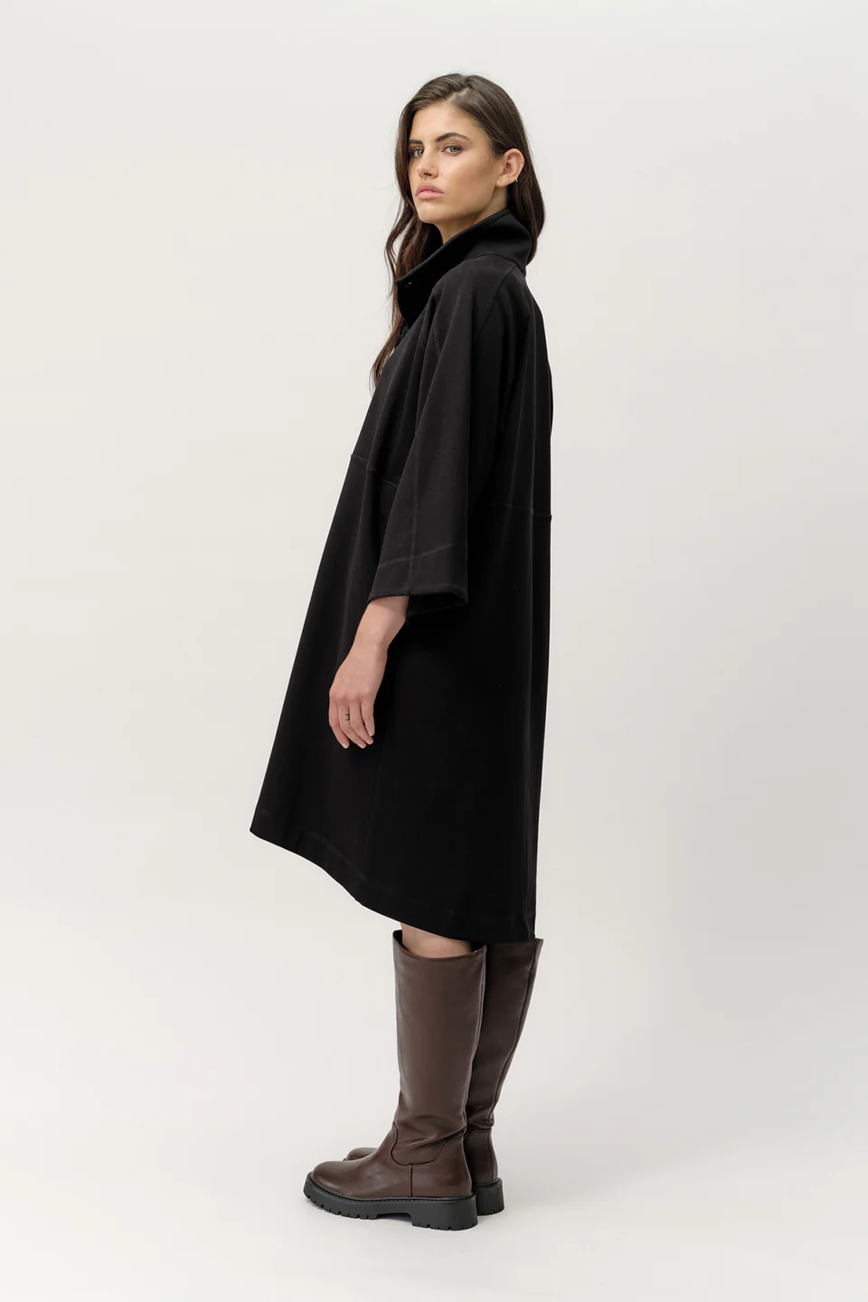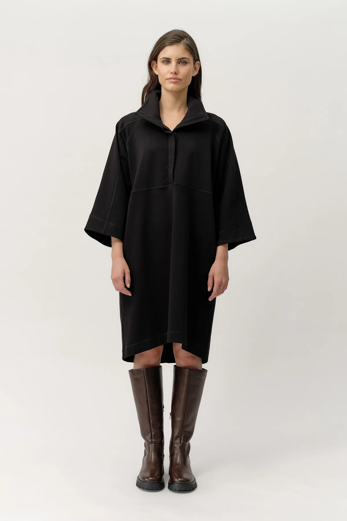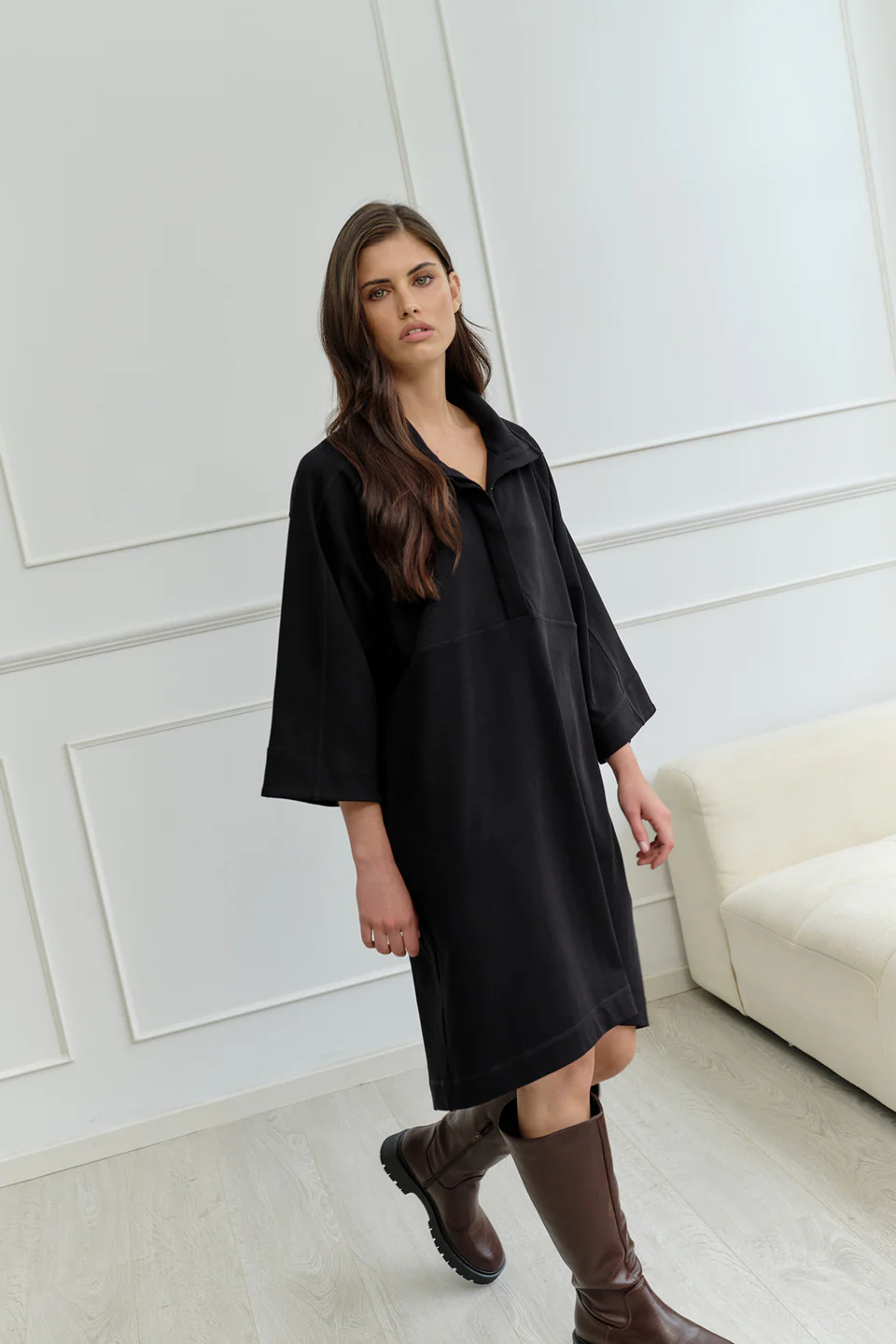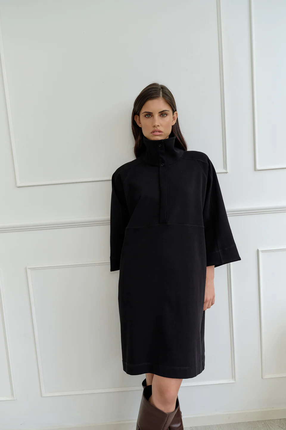 The Winn Midi Dress is an effortless wardrobe essential, designed for ease without compromising on structure. Crafted from premium 100% heavyweight cotton jersey, this new fabrication for Josephine brings comfort with a refined weight and feel. It’s the attention to detail in every seam and stitch that truly sets the Winn apart. Beautiful coverstitch detailing ensures a considered finish, while the high neckline features button detailing, allowing the option to style with an exaggerated collar. The 3/4 sleeve adds warmth while still allowing for easy layering. Side pockets bring practicality, and the midi length with a subtle high-low hem creates movement and shape.