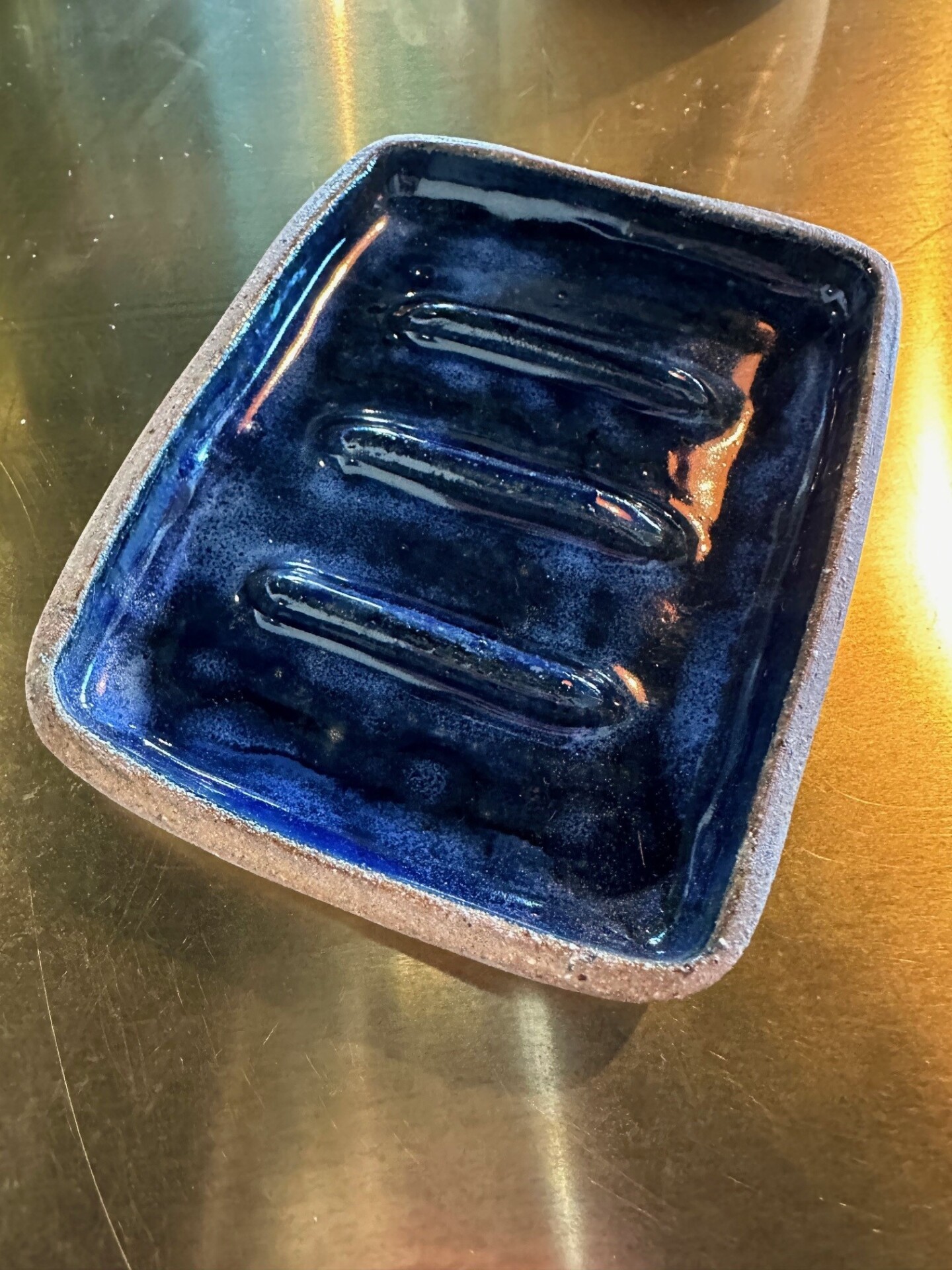 This soap dish is handmade by Emma Turner in her home studio. Each plate has its own character and will vary slightly in size, shape and decoration.